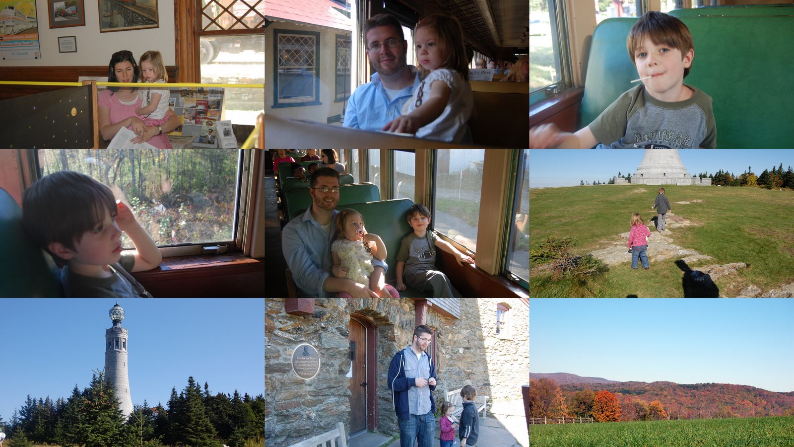 The next day we went to a fun pumpkin farm and the kids had fun looking around and doing some of the various activities there like a pumpkin car race and a hay ride. We also drove up to the top of Mount Greylock. Doesn't that just sound cool? And kind of spooky? It did to me. It was pretty at the top and they had a large memorial up there you could climb up. The leaves were pretty and it was a fun drive. We also went to a neat college in Williamstown that was a really cool college town with a neat old downtown where we ate lunch and then went to their art museum which had a really amazing collection despite the fact that it was a pretty small museum. But we made it through without the kids breaking anything, so it was a success!